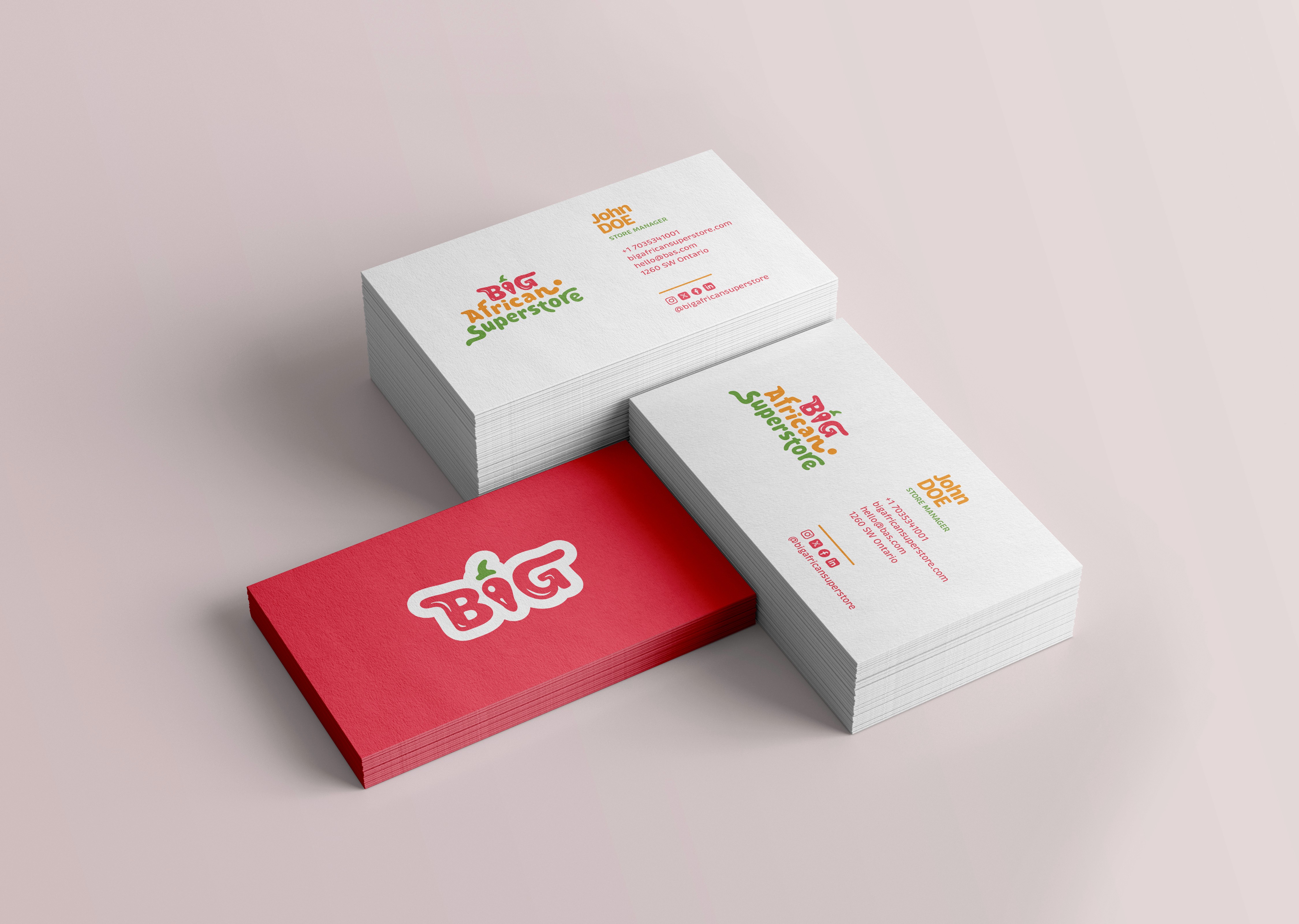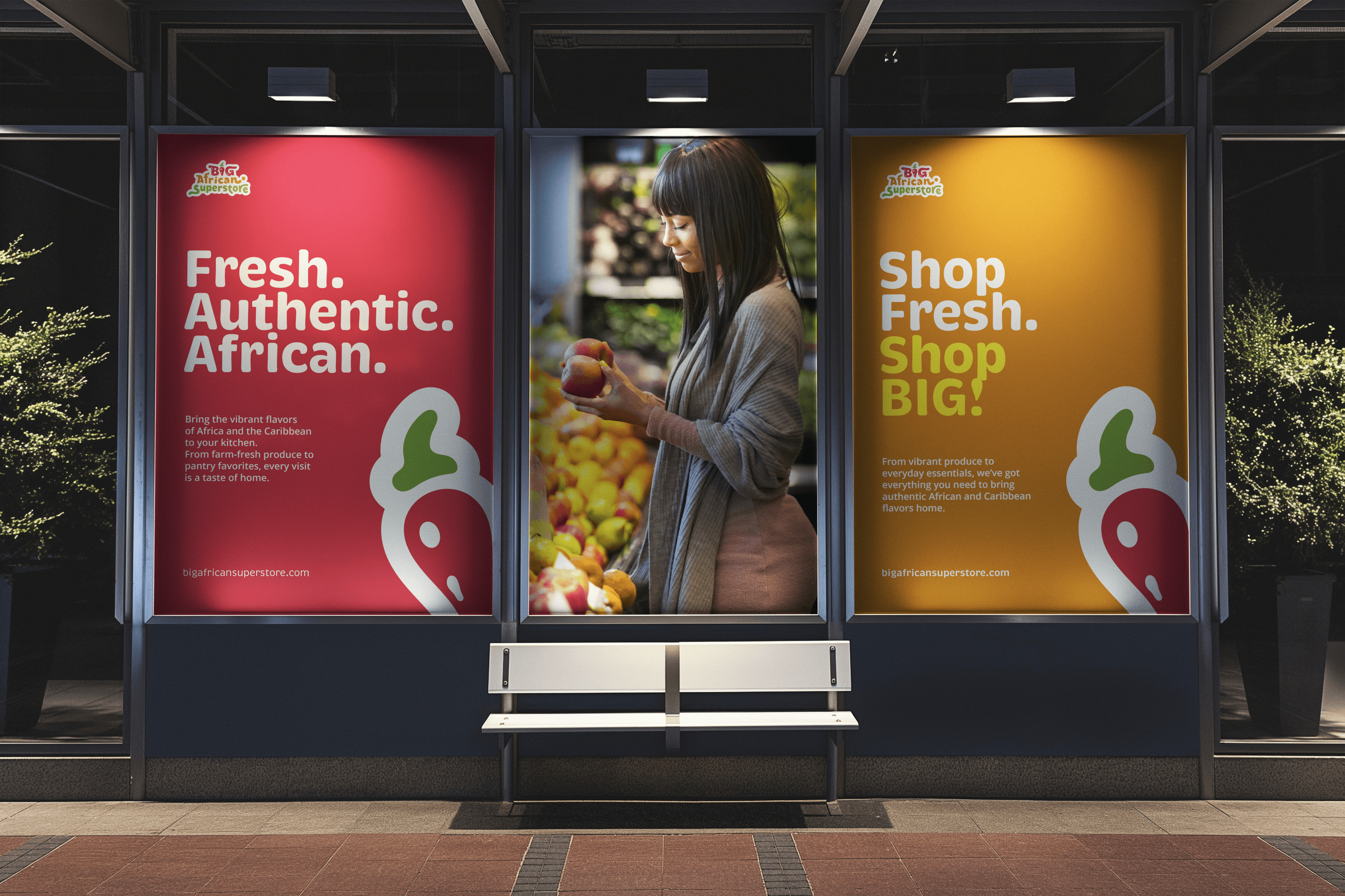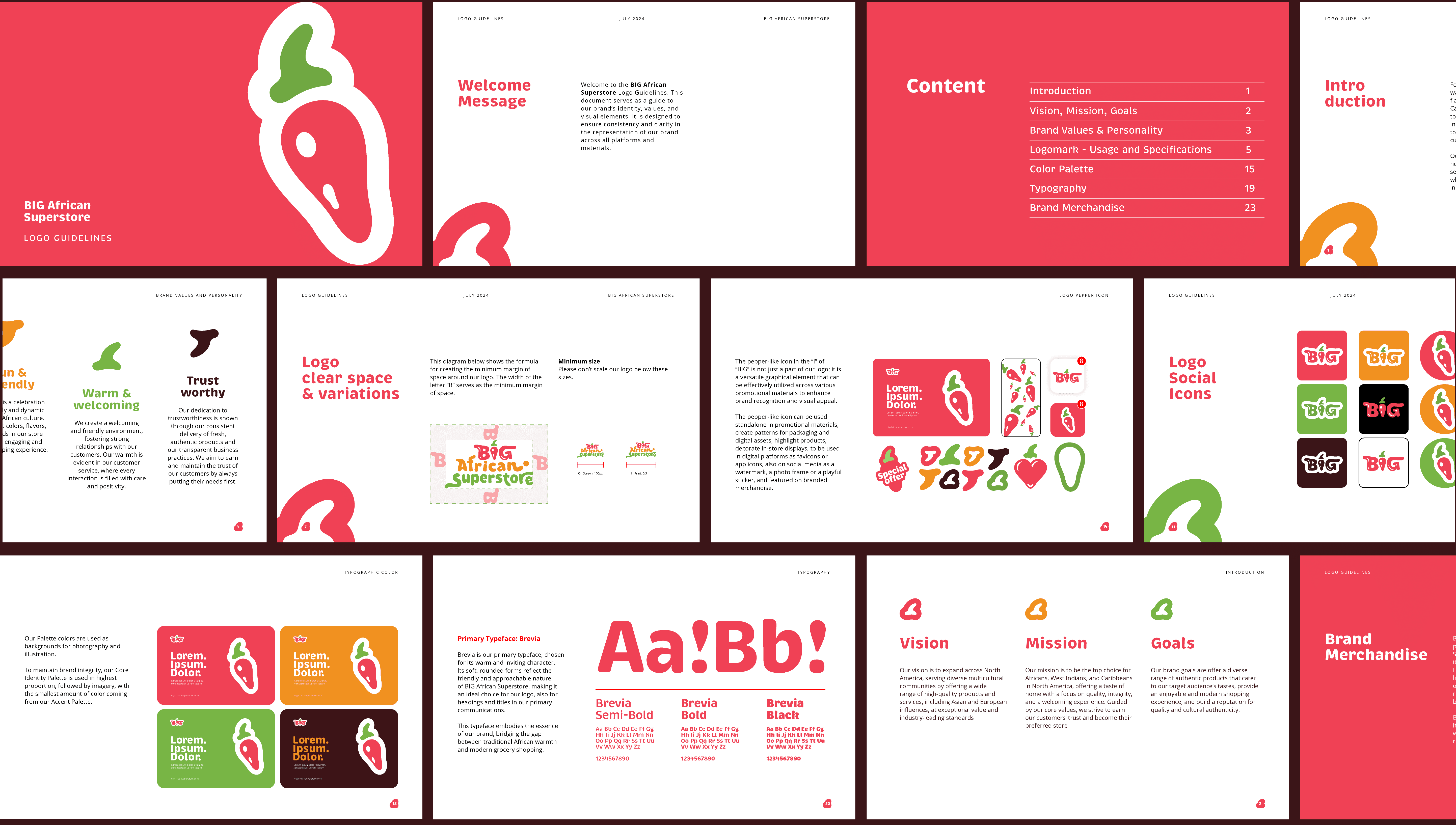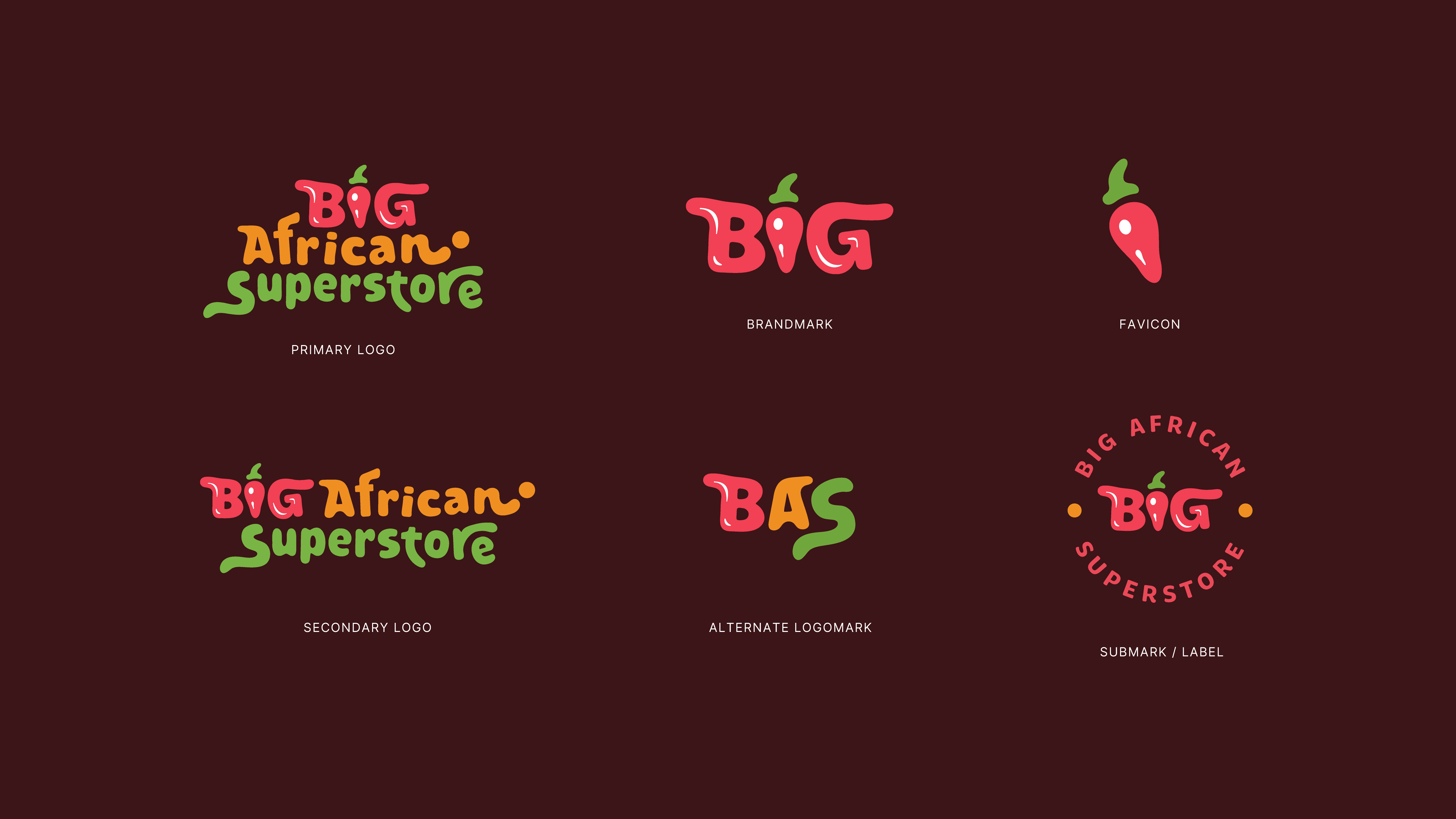 To bring BIG African Superstore’s vision to life, I focused on creating a brand identity that felt as culturally expressive as it was commercially functional. The solution began by identifying a core metaphor: fresh produce as identity. From there, the letters of “BIG” were imagined not as static type, but as dynamic forms that could embody flavor, color, and movement; much like the ingredients found in an African market. Rather than relying on generic typography or overly literal symbols, the approach centered on transforming type into storytelling. The “I” in particular was designed to resemble an African bell pepper - a subtle yet powerful nod to the culinary culture at the heart of the brand.