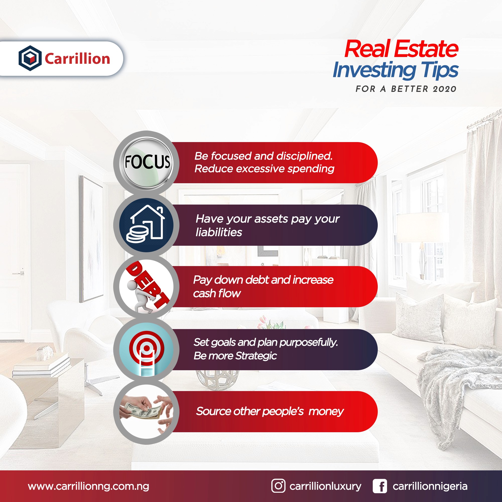 The refreshed visual identity brought structure, consistency, and professionalism to Carillion’s social media platforms, reinforcing the brand’s presence and allowing for consistent, on-brand communication at a time of rapid growth and national recognition. The new visual system supported Carillion’s positioning among Nigeria’s leading real estate companies, complementing their reputation for delivering high-quality developments - a reputation reflected in milestones such as the NIOB Real Estate Firm Award and their recent nomination for ‘Best Estate Company of the Year’ by a New Telegraph, national publication.