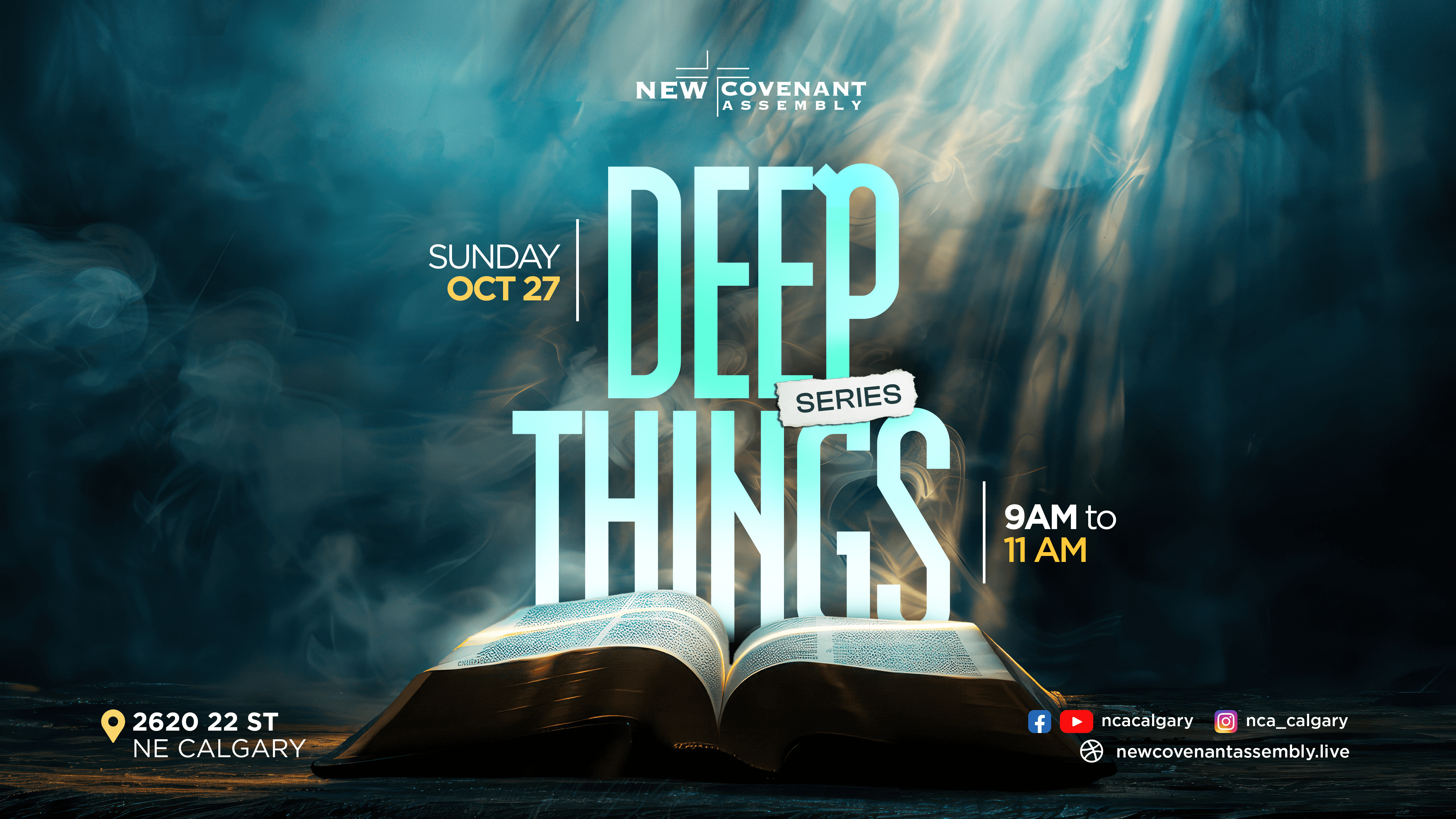 The New Covenant Assembly Calgary needed visually engaging, theme-driven event designs that adapt to diverse platforms while maintaining professional presentation.