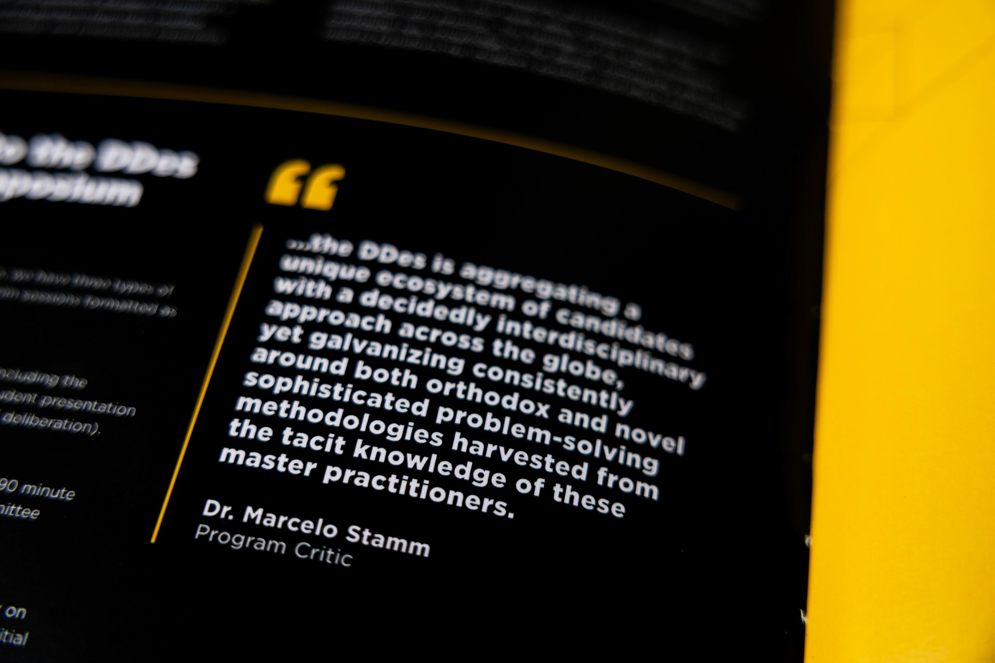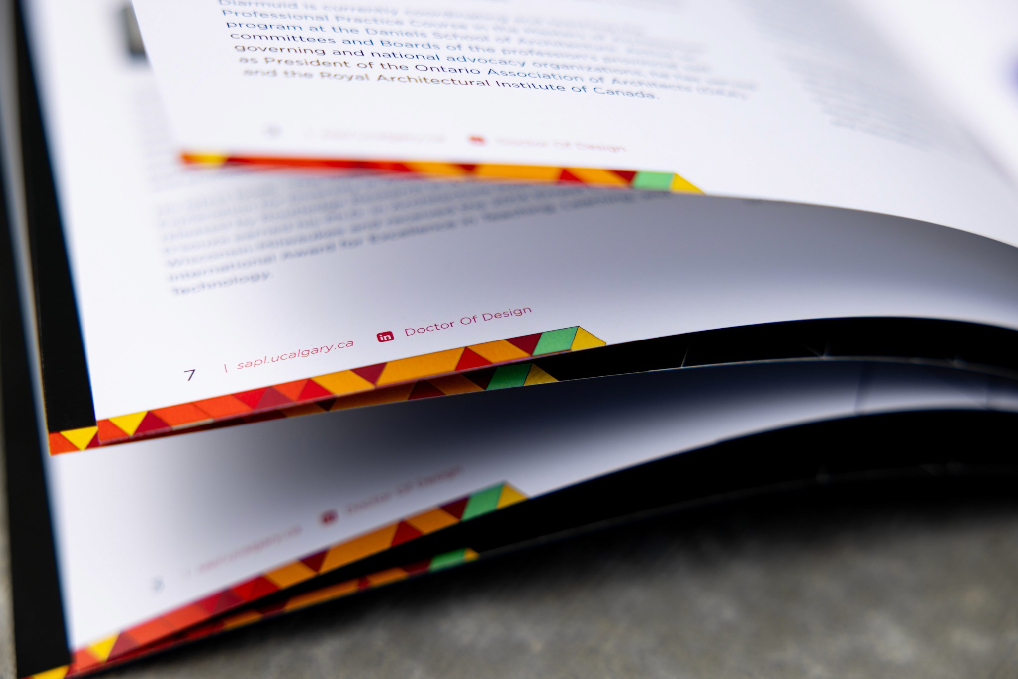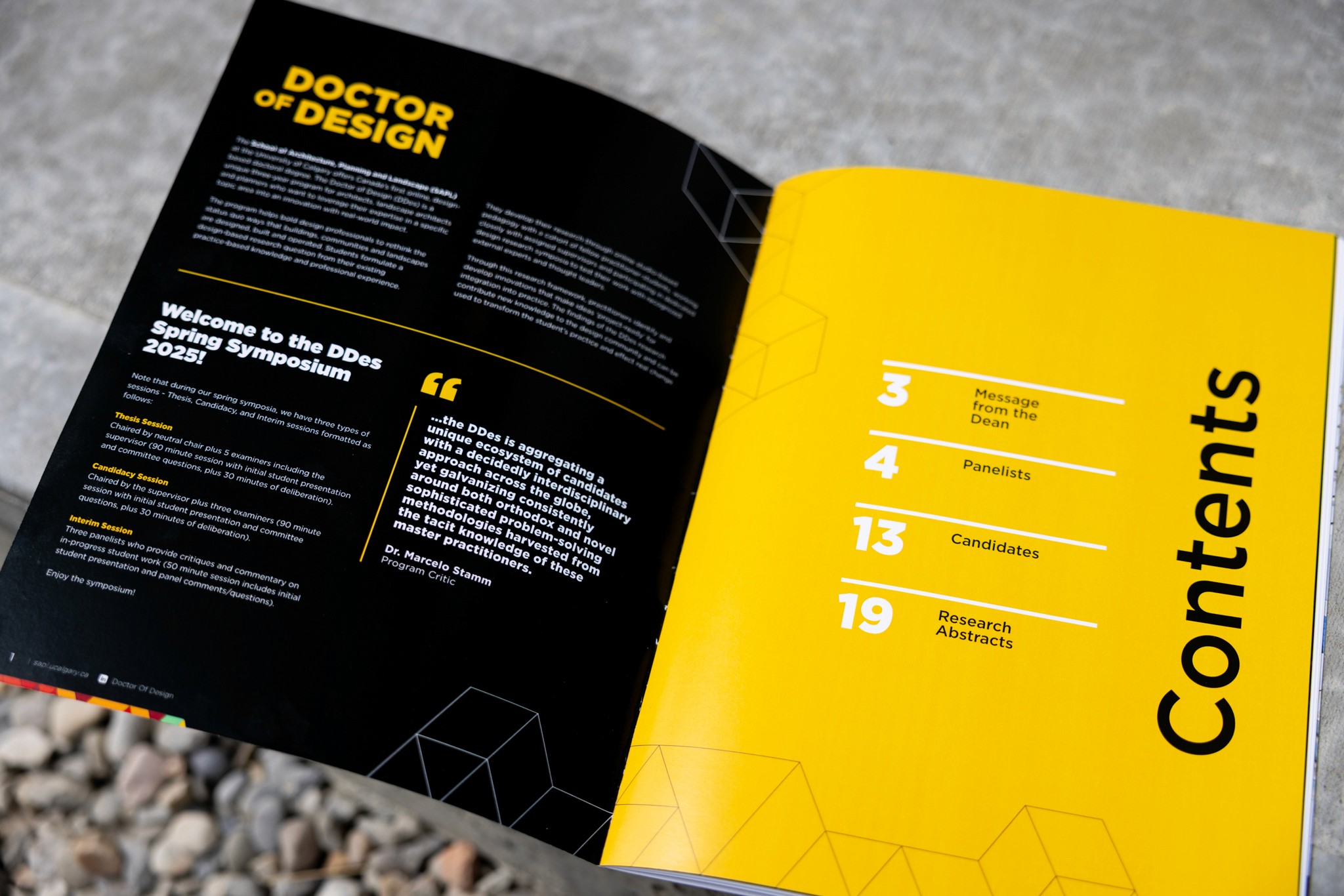 The premium matte finish elevated the physical presentation, providing a refined, high-quality look that aligned with the prestigious nature of the Doctor of Design program. Beyond its immediate functional role, the booklet also served as an impactful brand piece. According to the program coordinator, of the 20 copies printed, only three remained after the event, as attendees were eager to keep the booklets as mementos. This response highlighted the booklet’s success not only as a practical guide but as a desirable, well-crafted item that participants valued beyond the symposium itself. The project strengthened SAPL’s visual identity, supported program visibility, and contributed to ongoing recruitment and stakeholder engagement efforts.